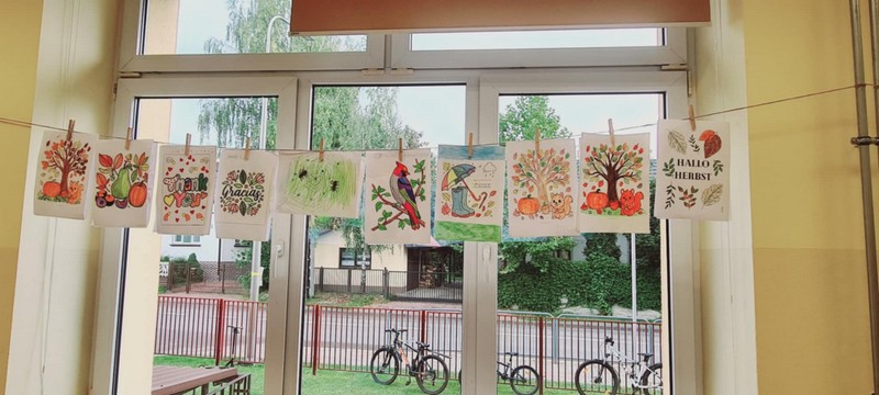 Dzieci z naszej świetlicy z radością przywitały jesień! 🍂 W ramach zajęć plastycznych wykonały piękne prace inspirowane tą kolorową porą roku. Tym razem powstały aż dwa wyjątkowe plakaty przedstawiające Panią Jesień, która zawitała do nas z koszem pełnym barw i liści. Szkic do plakatu przygotowała utalentowana uczennica klasy 6 – Gabrysia, a następnie dzieci ze świetlicy wspólnie ozdabiały prace, dodając im kolorów, faktur i jesiennego uroku. Efekt końcowy zachwyca wszystkich odwiedzających naszą świetlicę!
