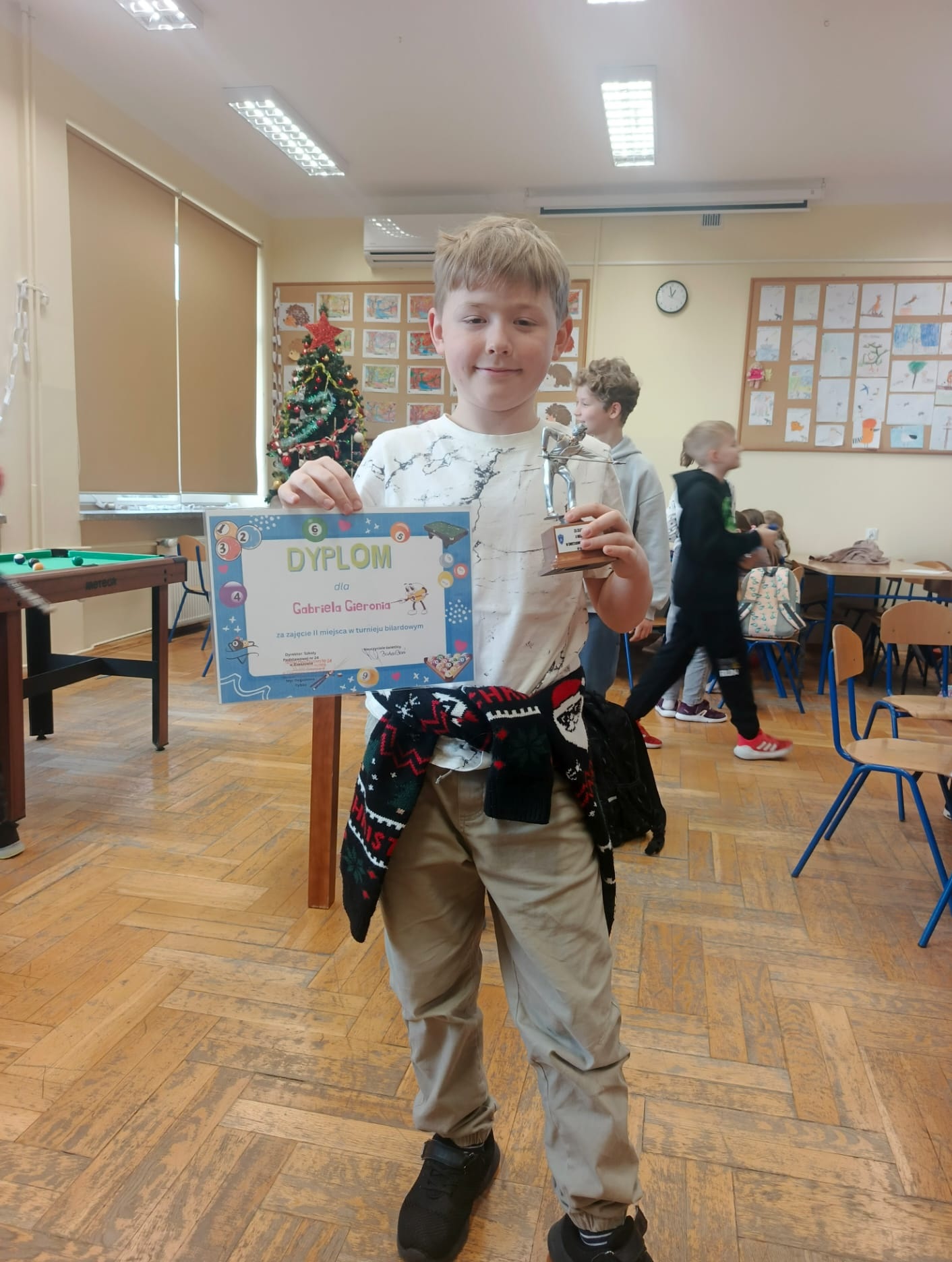 Dzieci z klas I–III wzięły udział w turnieju świetlicowym w bilarda. Uczestnicy z dużym zaangażowaniem rywalizowali ze sobą, wykazując się umiejętnościami, cierpliwością oraz zasadami fair play. Turniej przebiegał w miłej i radosnej atmosferze.