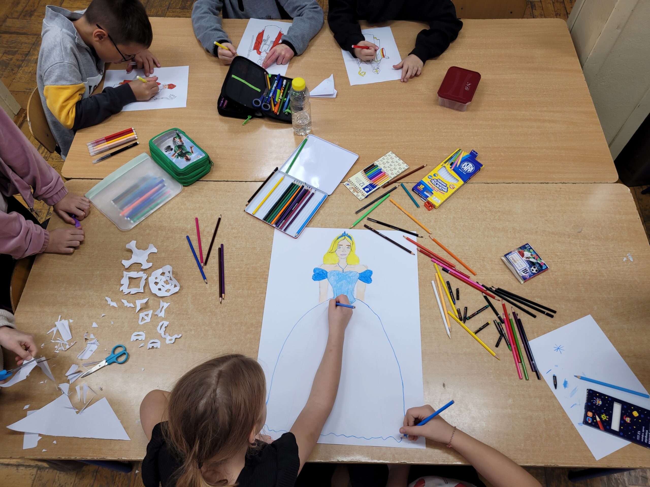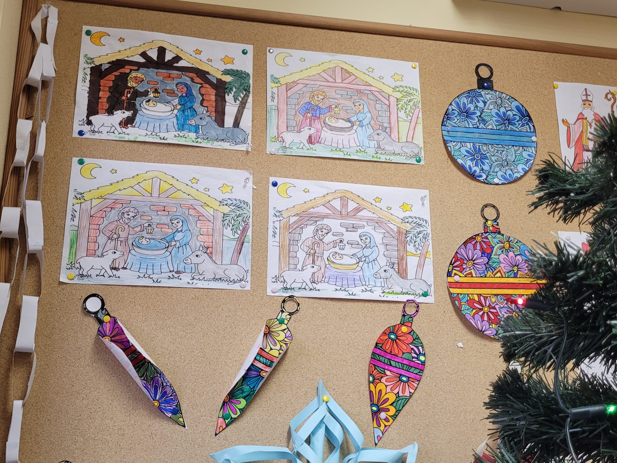 Do świetlicy zawitała Pani Zima, przynosząc zimową aurę i radosną atmosferę. Jednocześnie w obu świetlicach rozpoczęły się przygotowania do Świąt Bożego Narodzenia. W świetlicy dla klas I oraz w świetlicy dla klas II–III dzieci wspólnie ubierały choinki. Uczniowie z dużym zaangażowaniem wykonywali także prace plastyczne: gwiazdki, aniołki, stajenki, postacie Świętego Mikołaja oraz inne świąteczne dekoracje. Wspólne działania sprawiły, że w świetlicach zapanował ciepły, świąteczny nastrój.